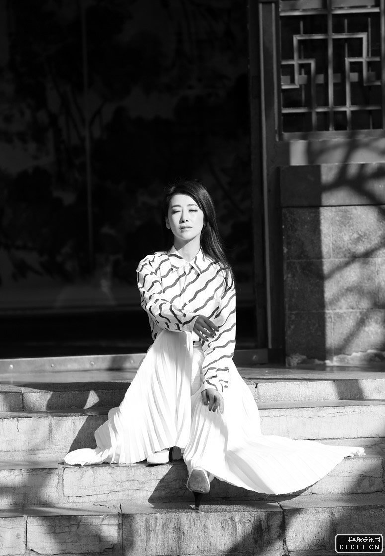 陳紫函曝光黑白文藝大片 庭院臺階上似聽(tīng)風(fēng)吟
