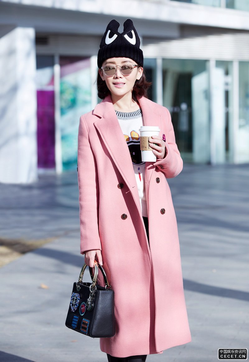 車(chē)永莉曝光早春街拍 粉紅色長(cháng)大衣彰顯甜美