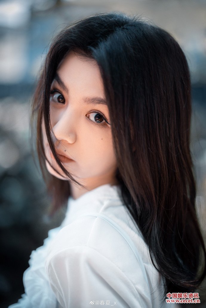 春夏白色長(cháng)裙站在樹(shù)下 眼神清澈靈動(dòng)似精靈