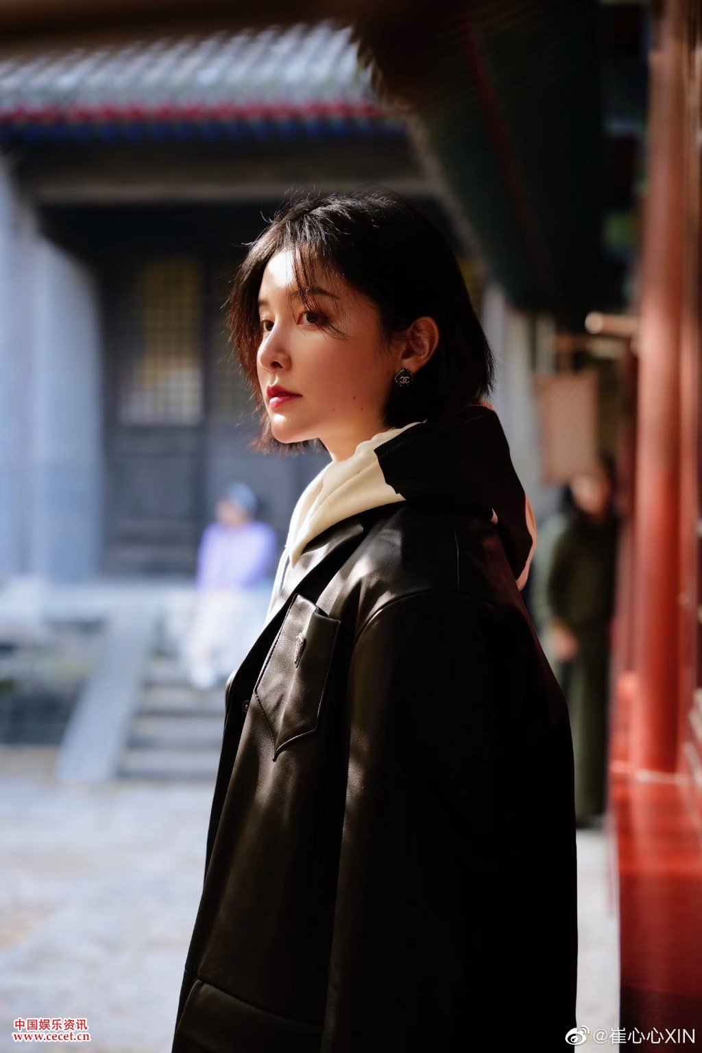 崔心心黑色皮衣文藝范 滿(mǎn)滿(mǎn)的浪漫氛圍感