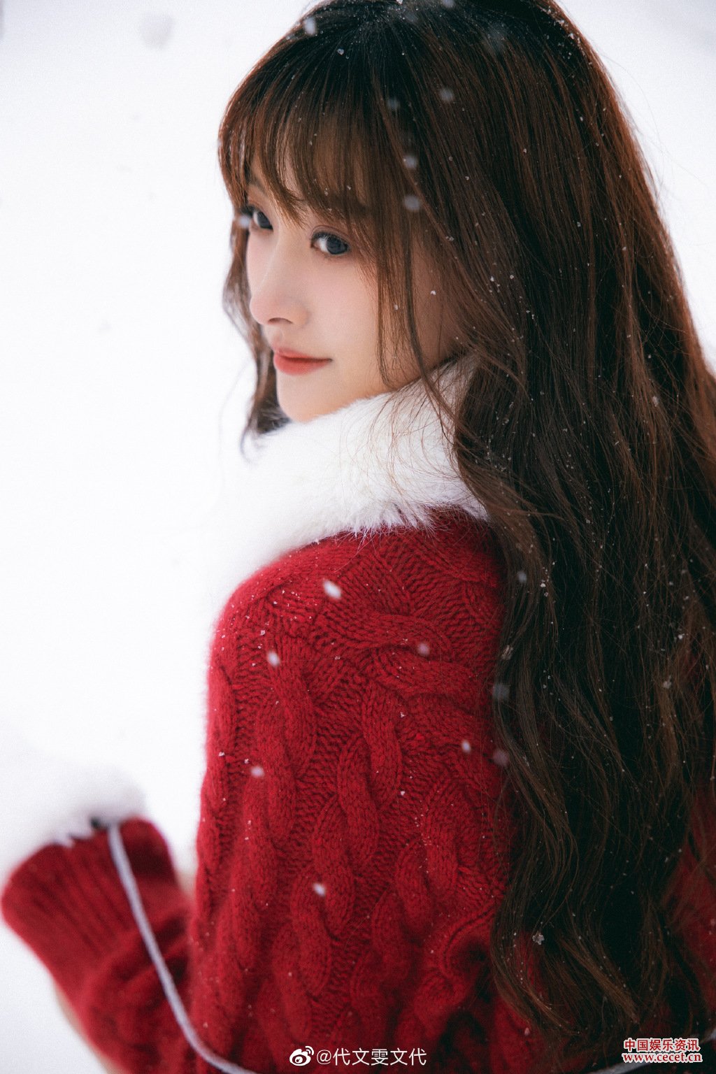 代文雯雪地紅裝喜慶照 舉手投足間活力滿(mǎn)滿(mǎn)