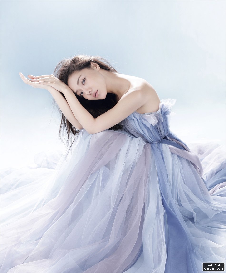 鄧家佳淺藍色露肩長(cháng)裙 溫婉可人仙氣飄飄