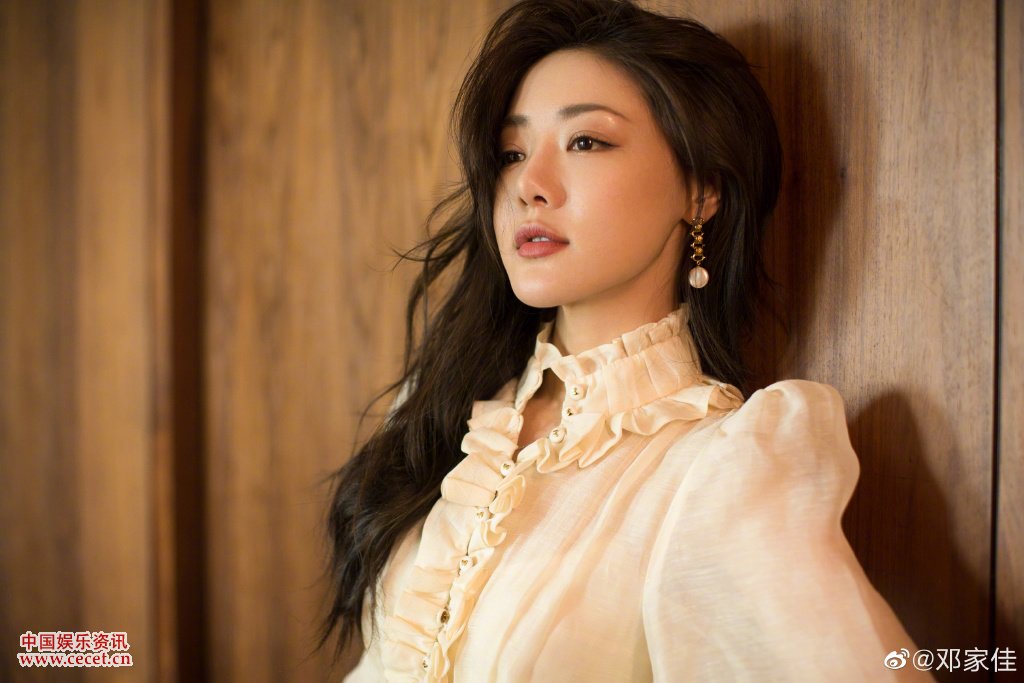鄧家佳泡泡袖長(cháng)裙美照 知性?xún)?yōu)雅簡(jiǎn)約大方