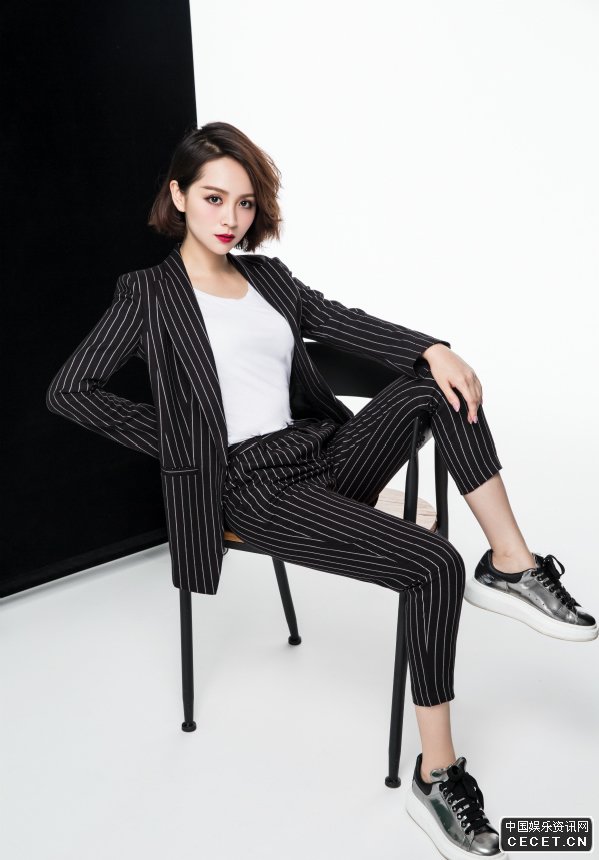 鄧莎條紋西裝短發(fā)紅唇 魅惑狂野干練御姐范