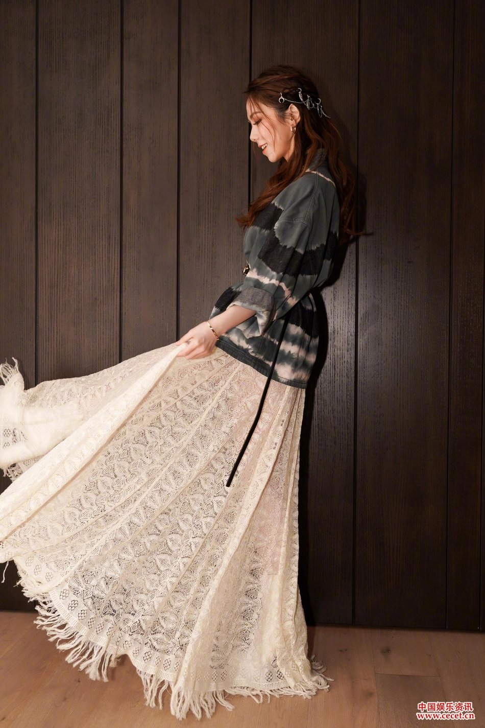 鄧紫棋身穿白色蕾絲半身裙自拍顯得優(yōu)雅安靜