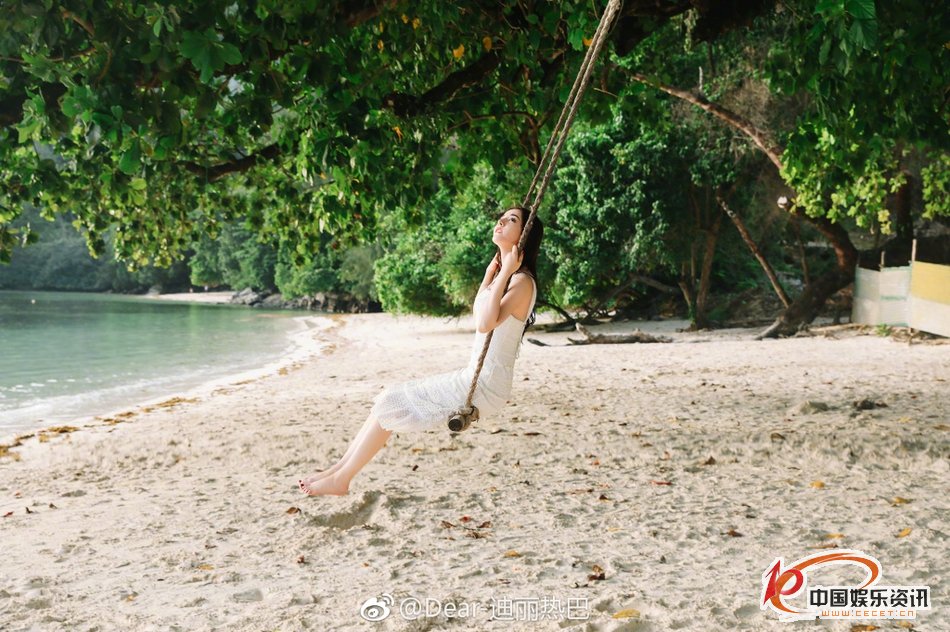 迪麗熱巴白裙氣質(zhì)清純 在海邊蕩秋千畫(huà)面超美