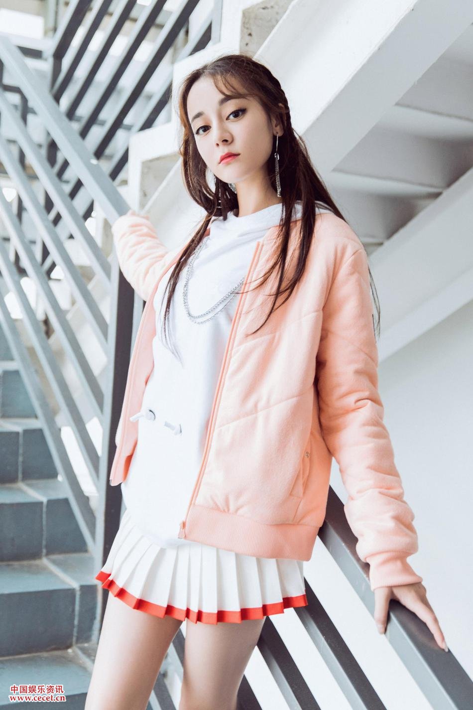 迪麗熱巴甜美運動(dòng)裝扮 超短百褶裙大秀美腿