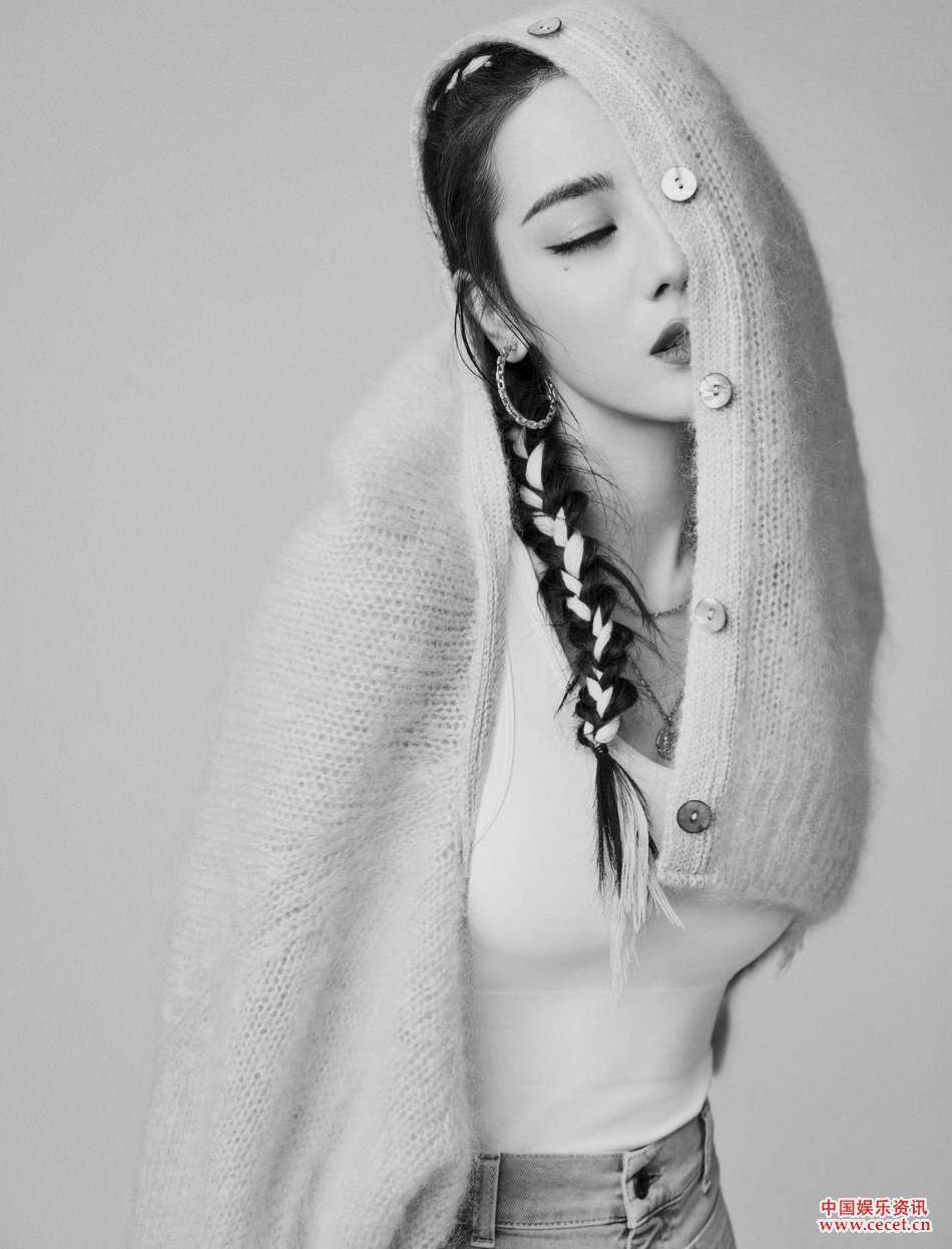 迪麗熱巴雙馬尾造型 黑白光影下盡顯高級質(zhì)感