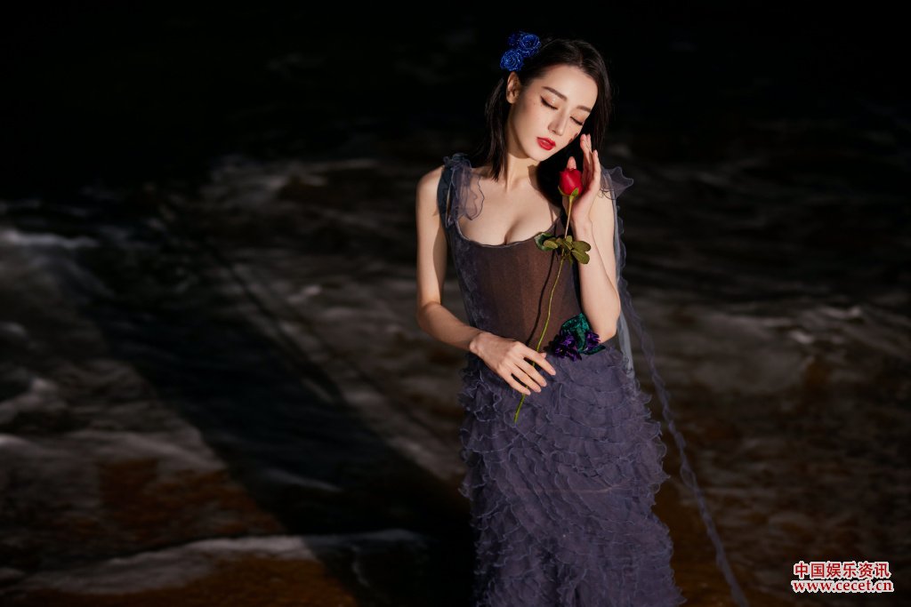迪麗熱巴拍攝寫(xiě)真 溫柔海風(fēng)輕拂裙擺迷人身影