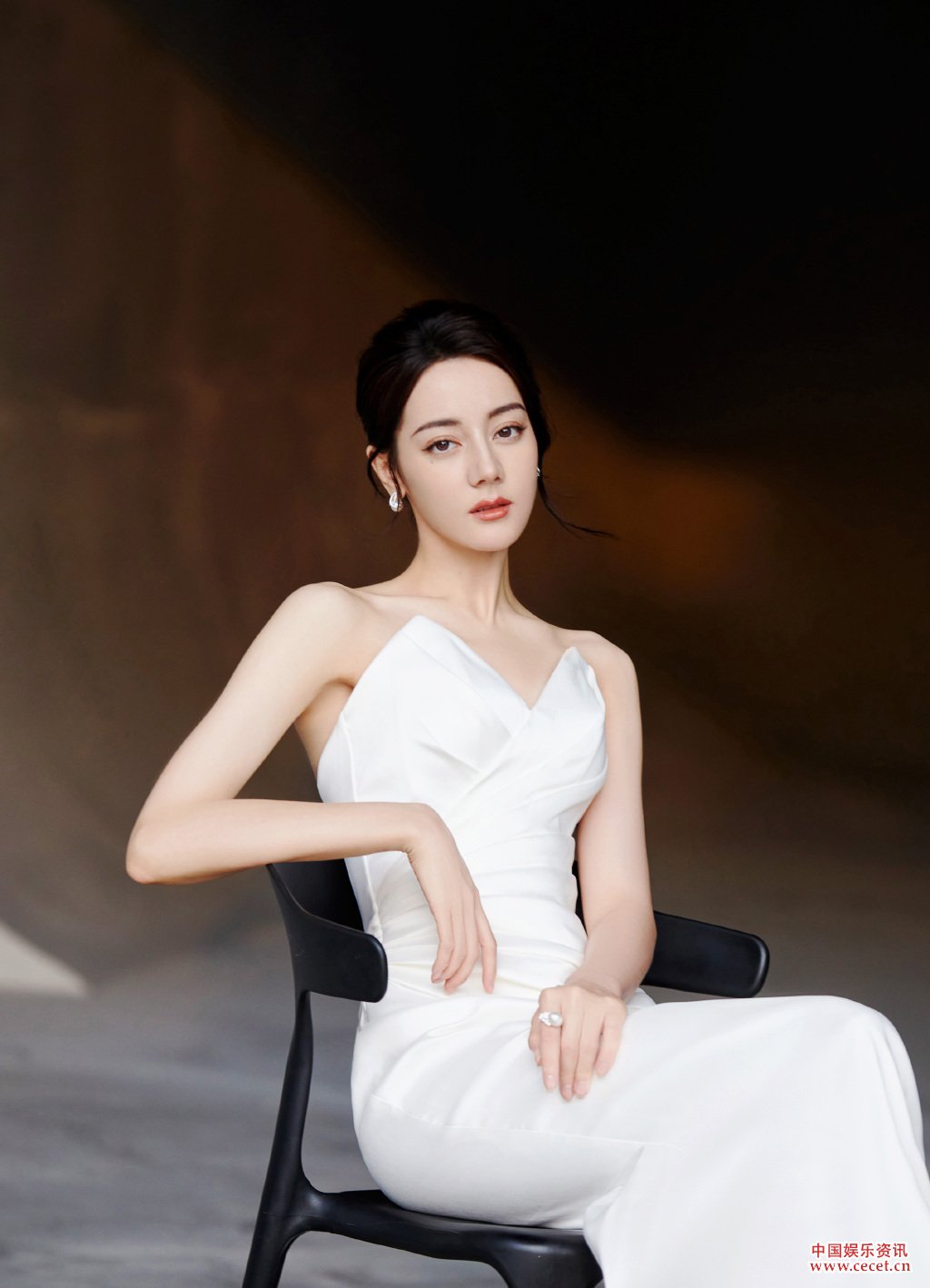 迪麗熱巴白軟緞流光長(cháng)裙 玲瓏身姿輕盈婉轉