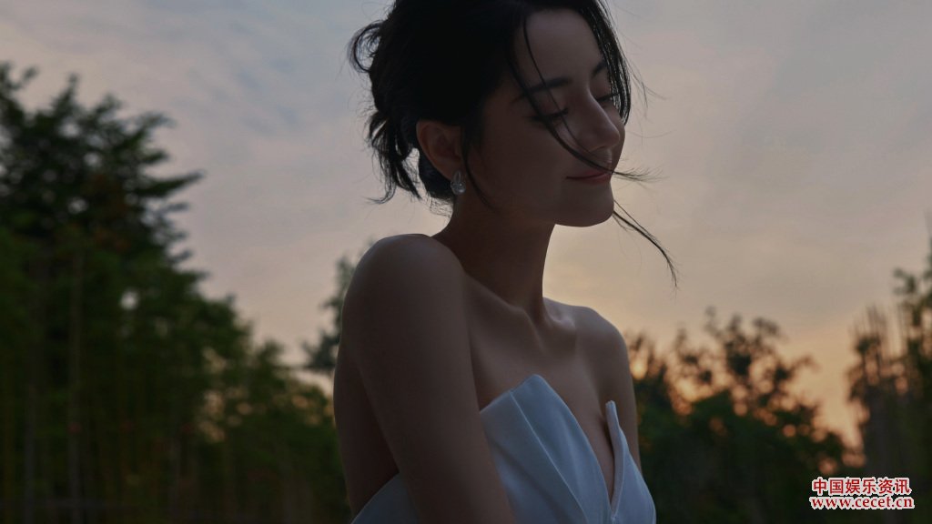 迪麗熱巴白軟緞流光長(cháng)裙 玲瓏身姿輕盈婉轉