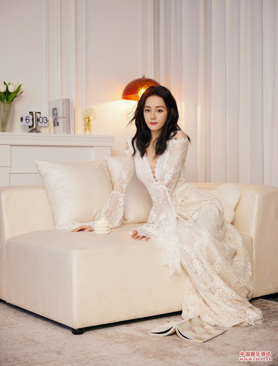 迪麗熱巴白色蕾絲長(cháng)裙 素雅隨性顯至簡(jiǎn)之美