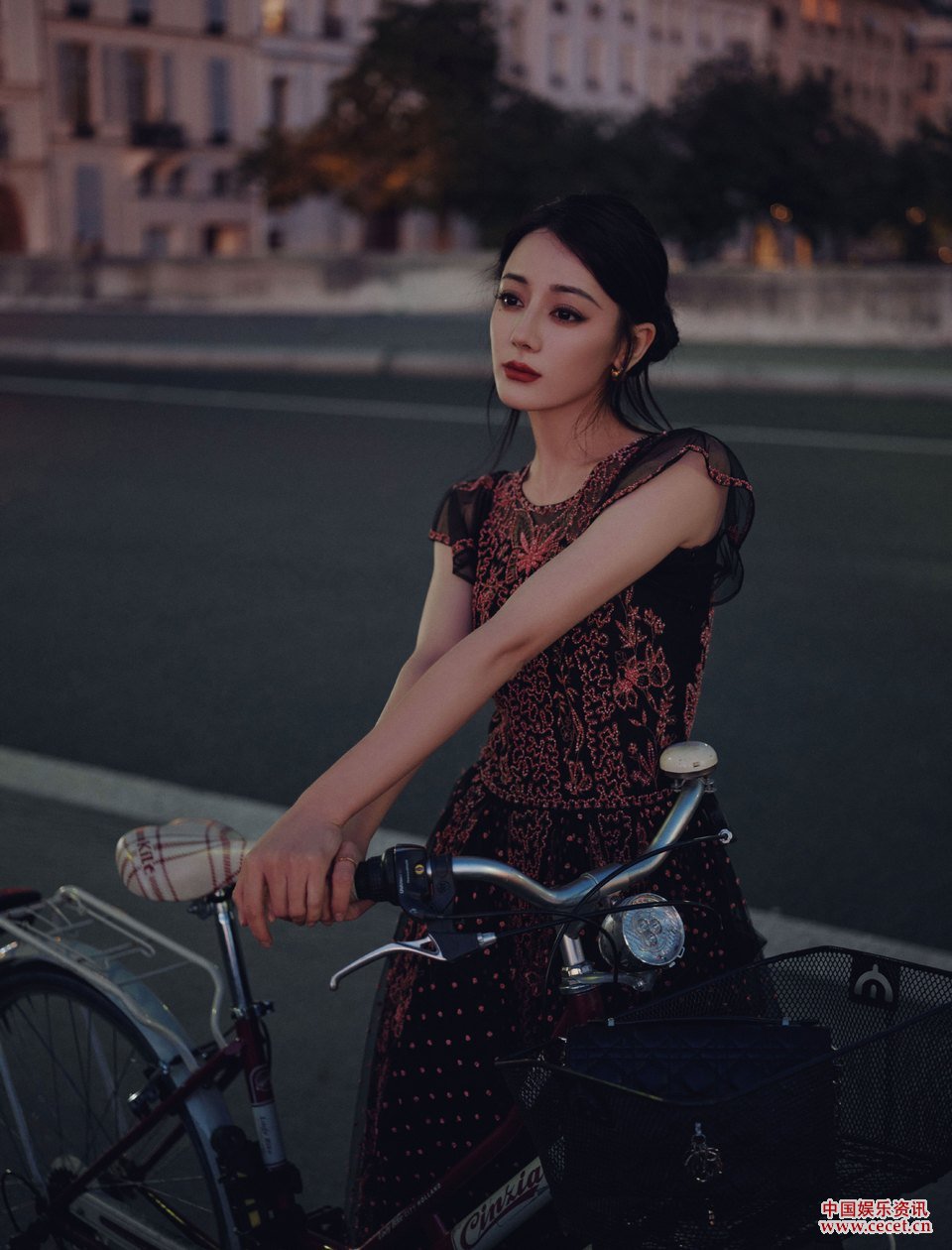 迪麗熱巴身著(zhù)黑色長(cháng)裙 融進(jìn)塞納河畔的晚風(fēng)