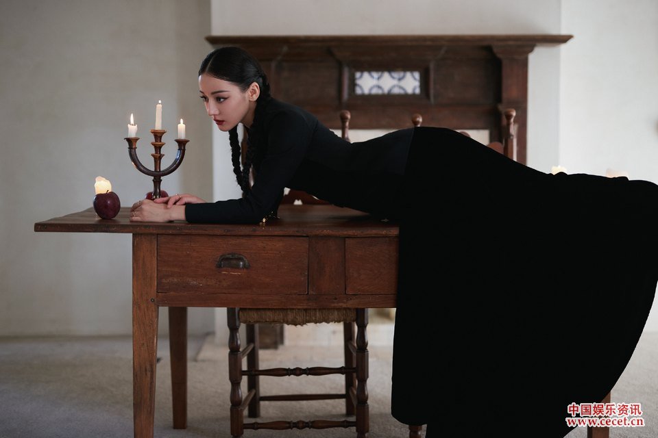 迪麗熱巴黑色長(cháng)裙西裝套裝 沉浸式拍攝致意經(jīng)典
