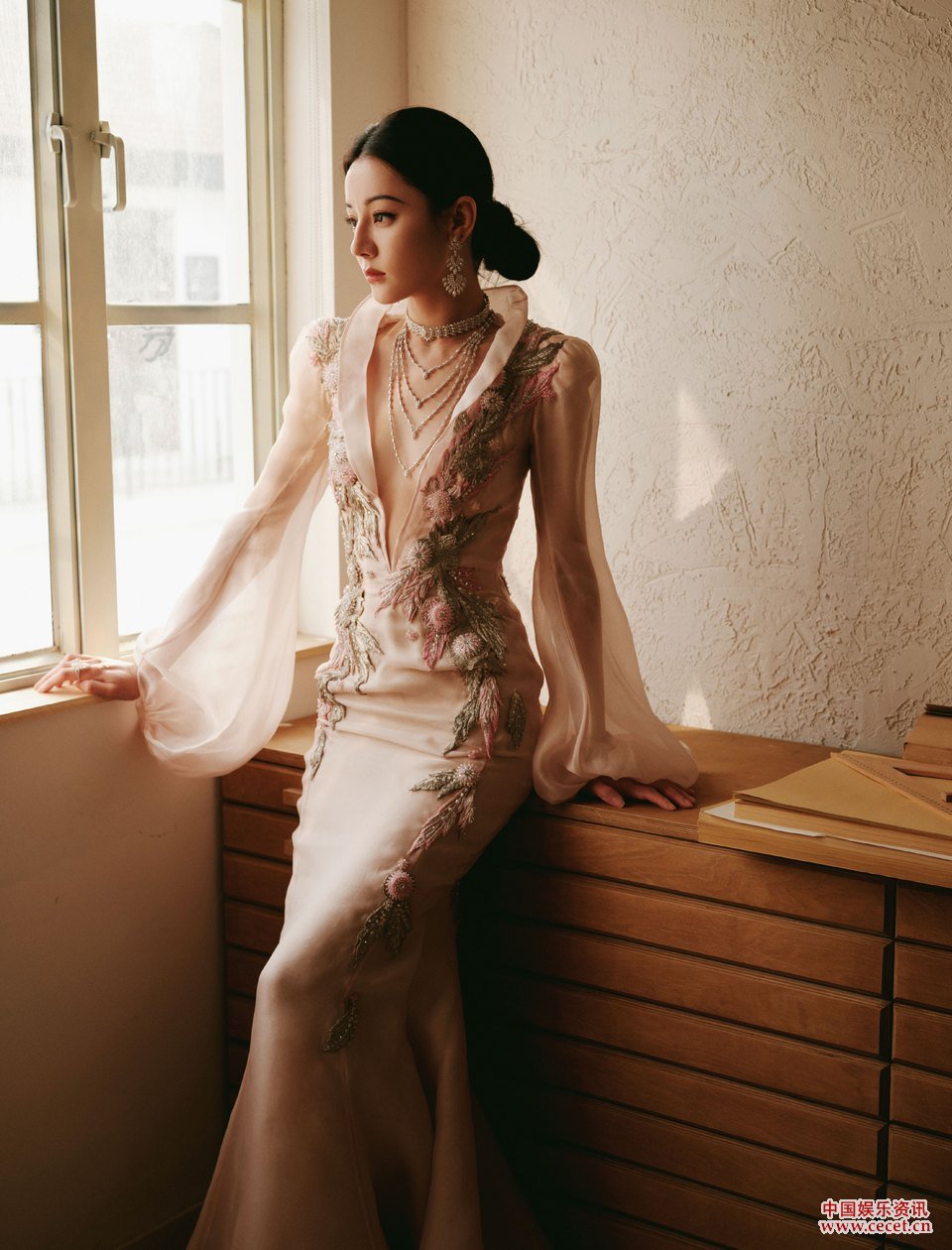 迪麗熱巴身著(zhù)淺粉刺繡禮裙 勾勒清淺時(shí)光