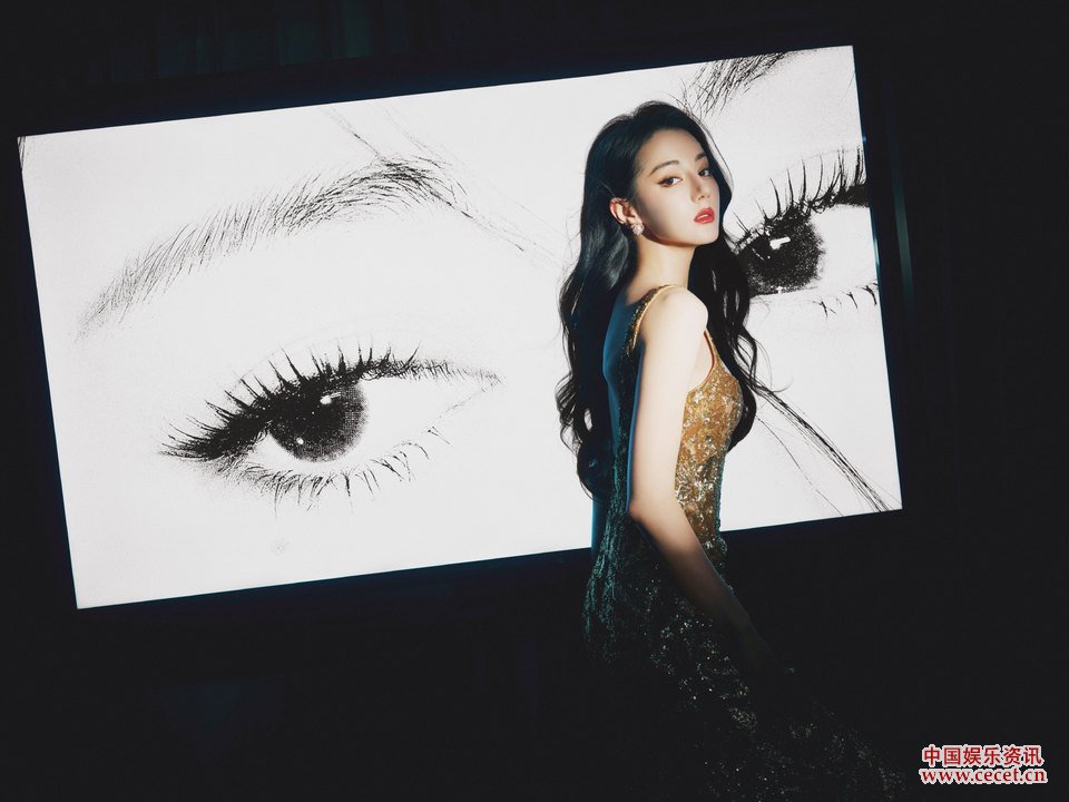 迪麗熱巴一襲金色長(cháng)裙 柔和光影勾勒曼妙身姿
