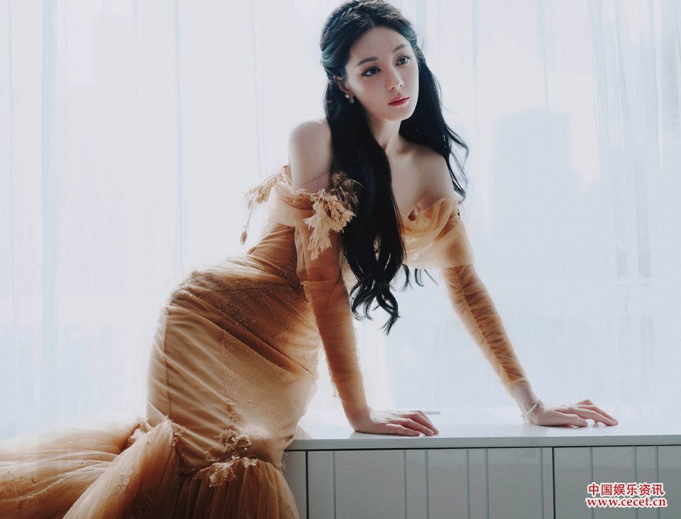 迪麗熱巴衣擺輕舞芬芳沁心 層層薄紗映襯金色浪漫
