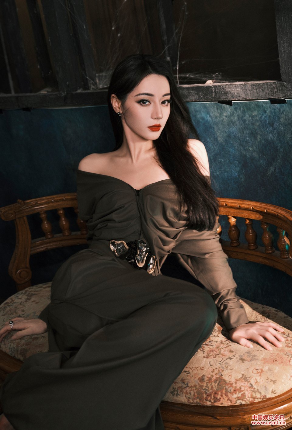 迪麗熱巴綠色褲裝酷颯有型 留下復古的光影印記