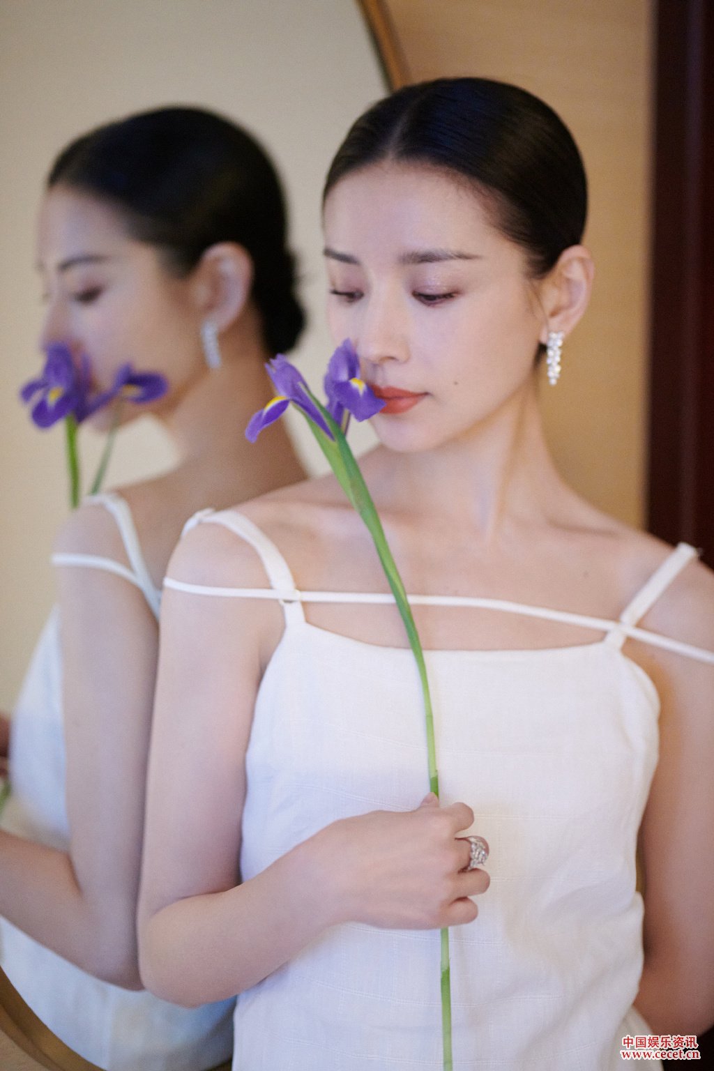 董潔白色長(cháng)裙簡(jiǎn)約森系 天鵝頸彰顯優(yōu)雅氣質(zhì)