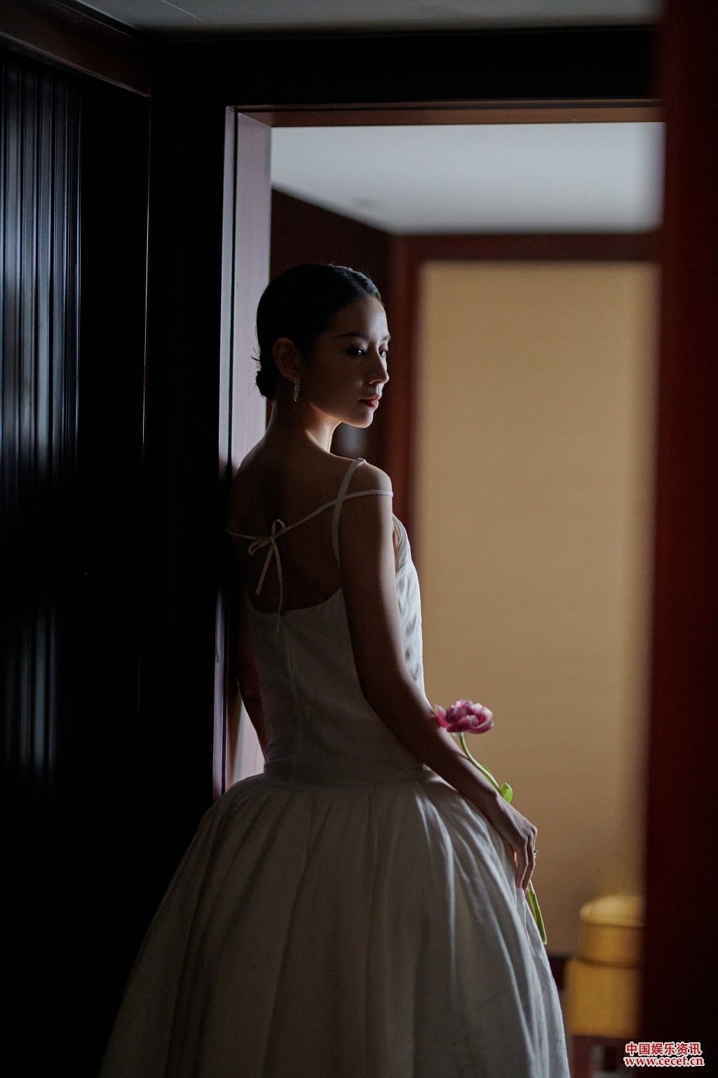 董潔白色長(cháng)裙簡(jiǎn)約森系 天鵝頸彰顯優(yōu)雅氣質(zhì)