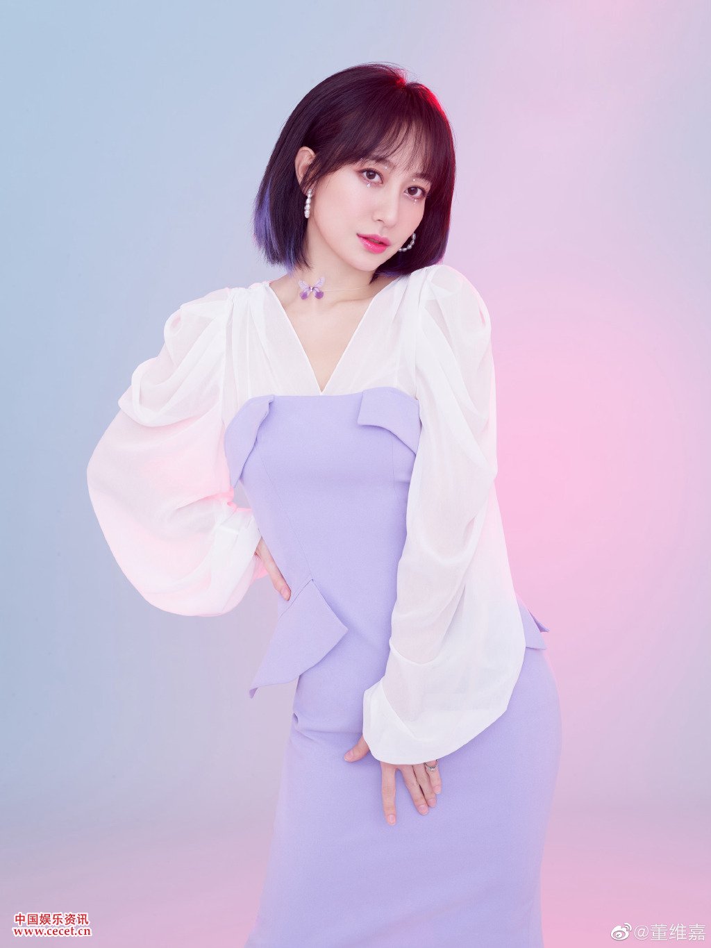 董維嘉泡泡袖緊身裙照 眼含笑意溫婉大方
