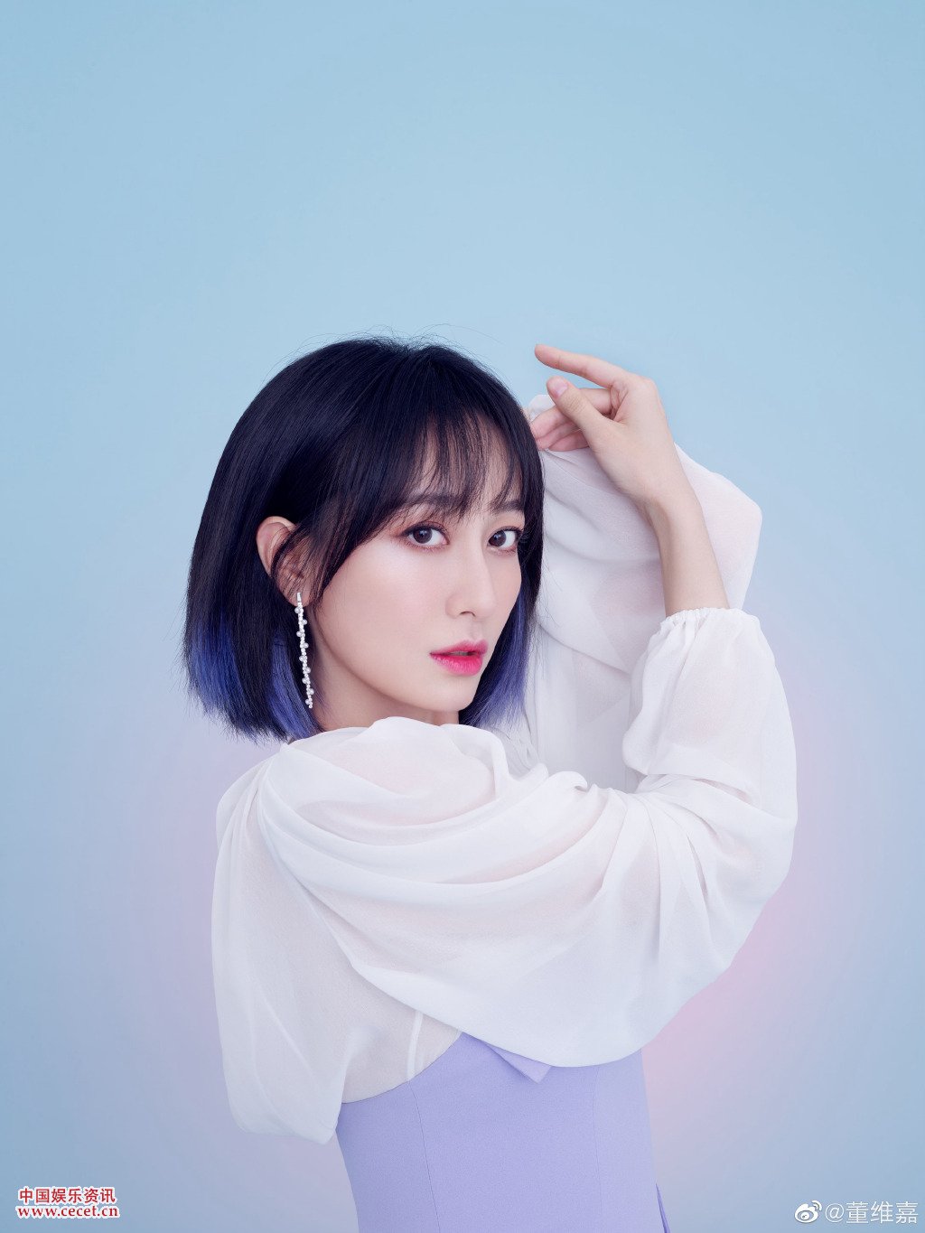 董維嘉泡泡袖緊身裙照 眼含笑意溫婉大方