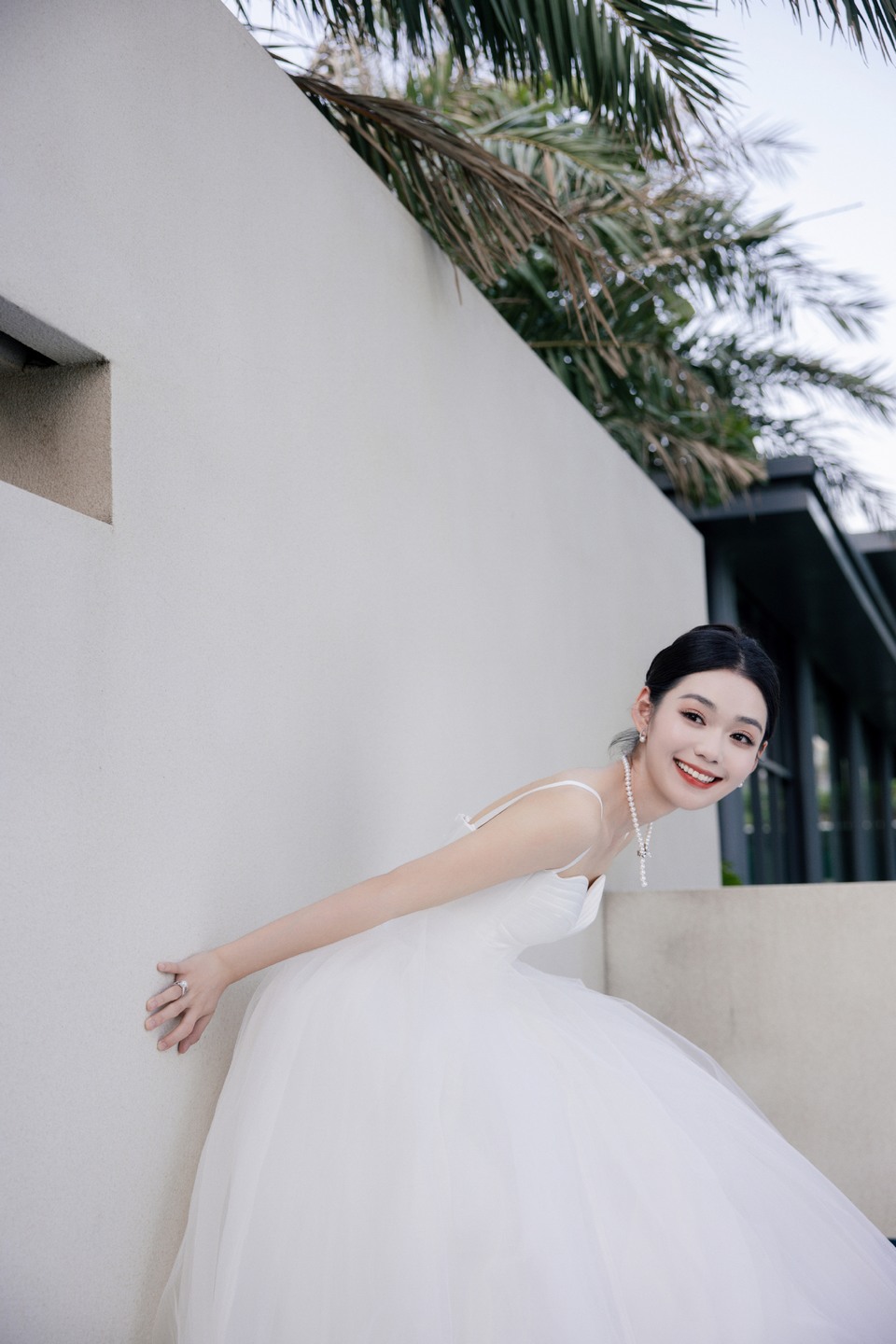 段奧娟純白珍珠妝容 一襲白色禮裙盡顯靈動(dòng)優(yōu)雅