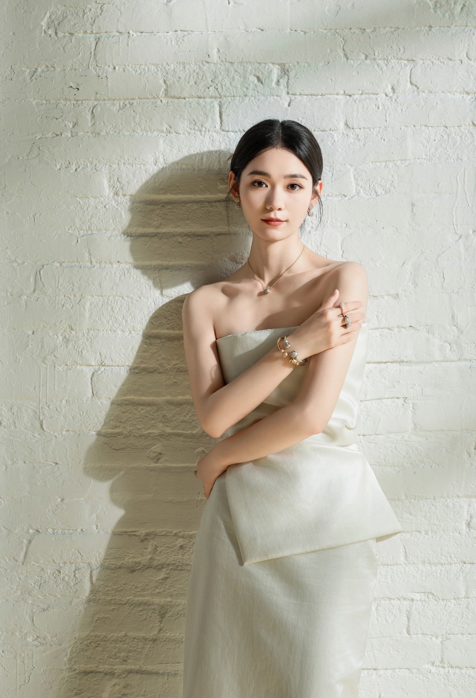 段奧娟白色抹胸裙赴約 緞光之上展純凈素雅