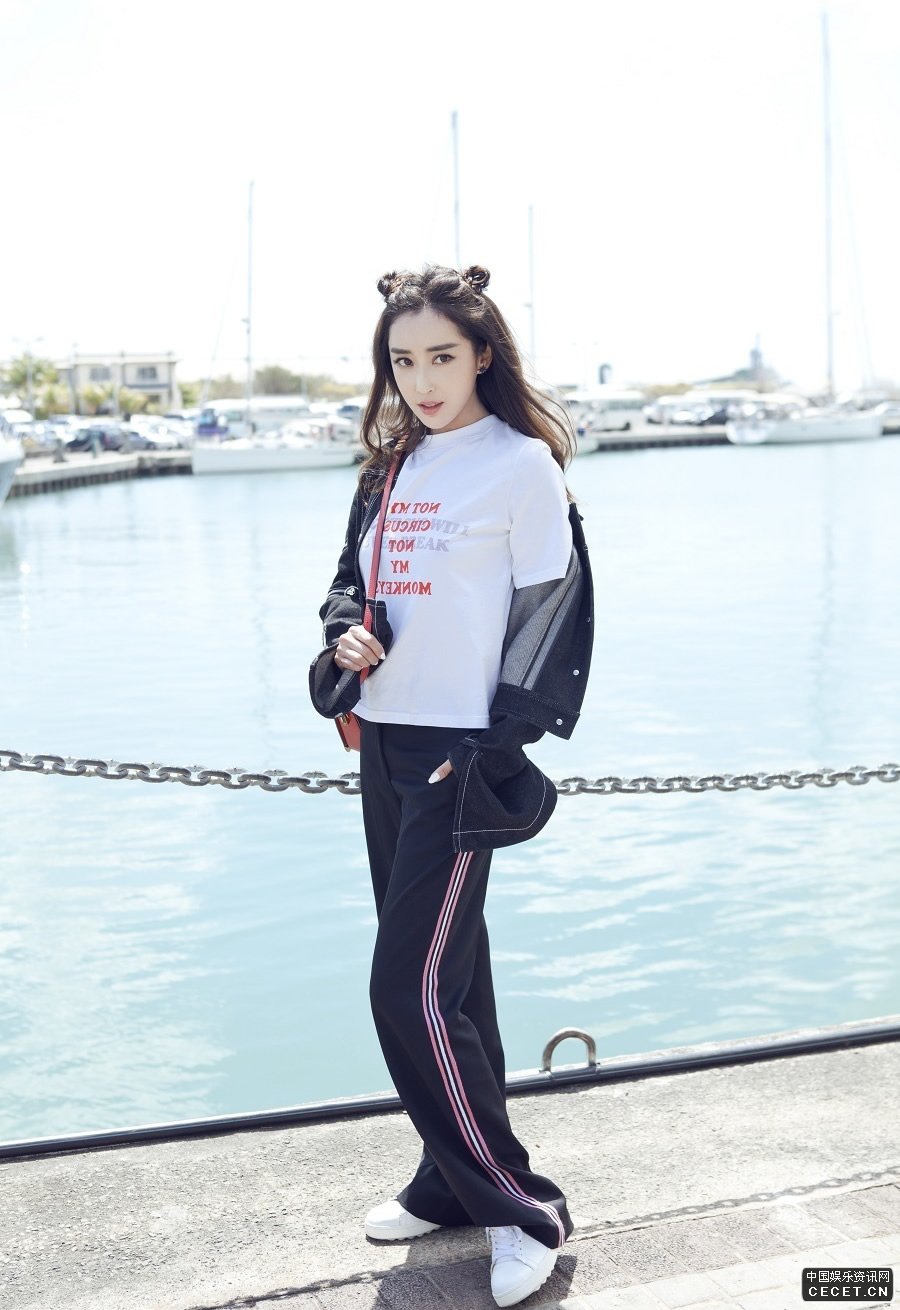 杜若溪國外旅行街拍 休閑時(shí)尚更顯長(cháng)腿好身材