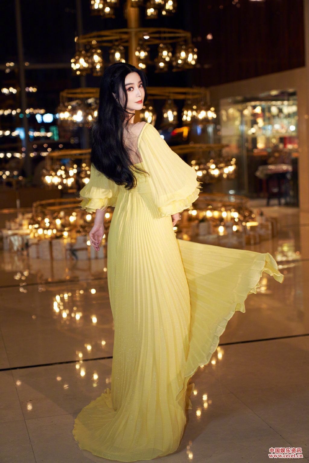 范冰冰淡黃長(cháng)裙婉約優(yōu)雅之中又透露非凡氣度