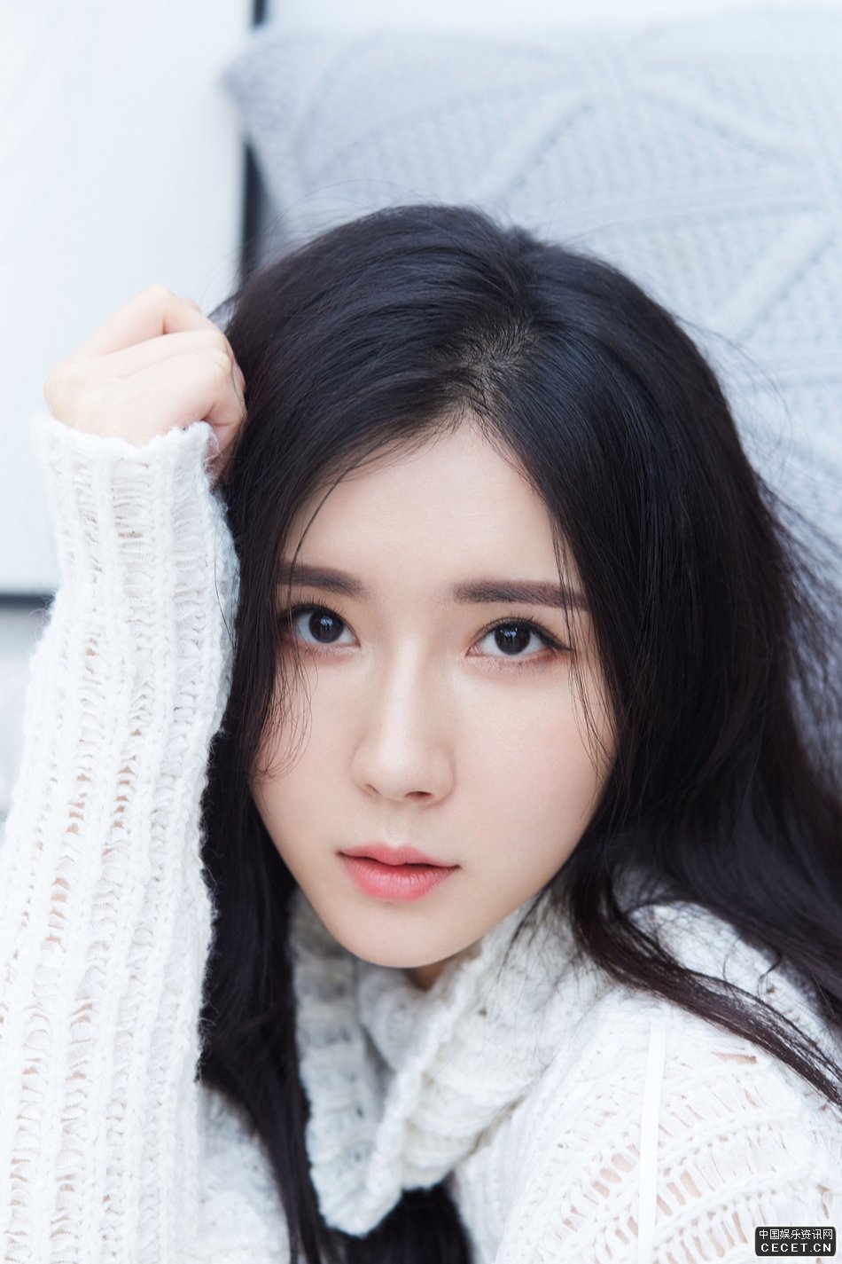 方安娜初冬時(shí)尚大片 白色鏤空毛衣干凈清新
