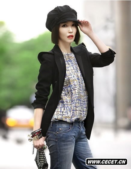 范文芳換潮帽時(shí)尚街拍 率性灑脫酷感十足