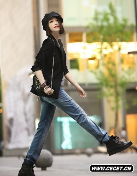 范文芳換潮帽時(shí)尚街拍 率性灑脫酷感十足