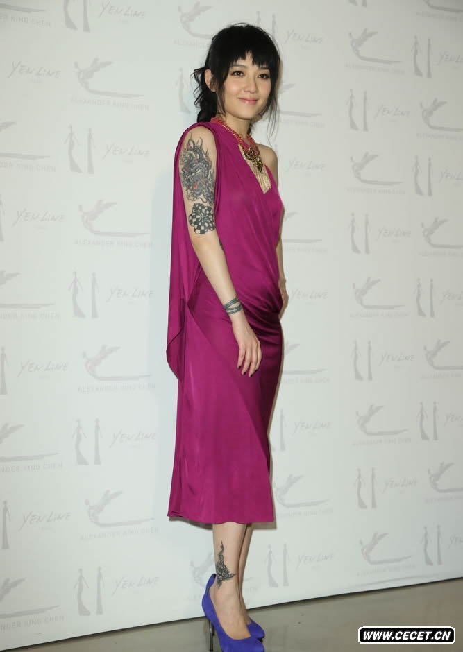 范曉萱身穿紫色裸臂晚禮服 大秀手臂勁酷紋身