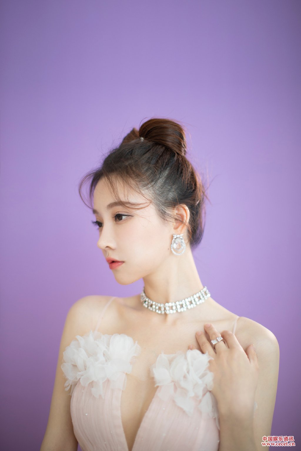 馮提莫淡粉色蛋糕紗裙 點(diǎn)綴白色羽毛如夢(mèng)似幻