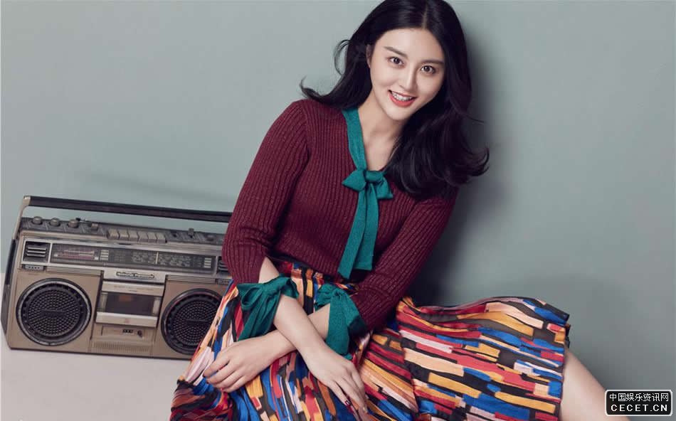 甘露絢麗長(cháng)裙席地而坐 精致的五官端莊秀麗