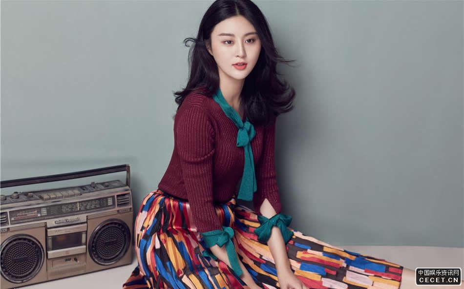 甘露絢麗長(cháng)裙席地而坐 精致的五官端莊秀麗