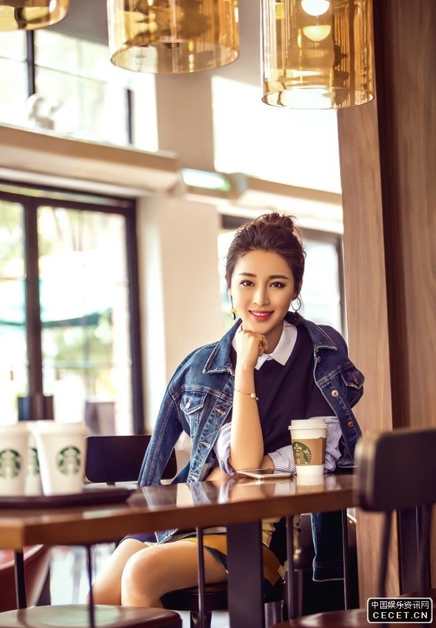 甘婷婷牛仔上衣花短裙 搭配無(wú)死角的側顏美腿