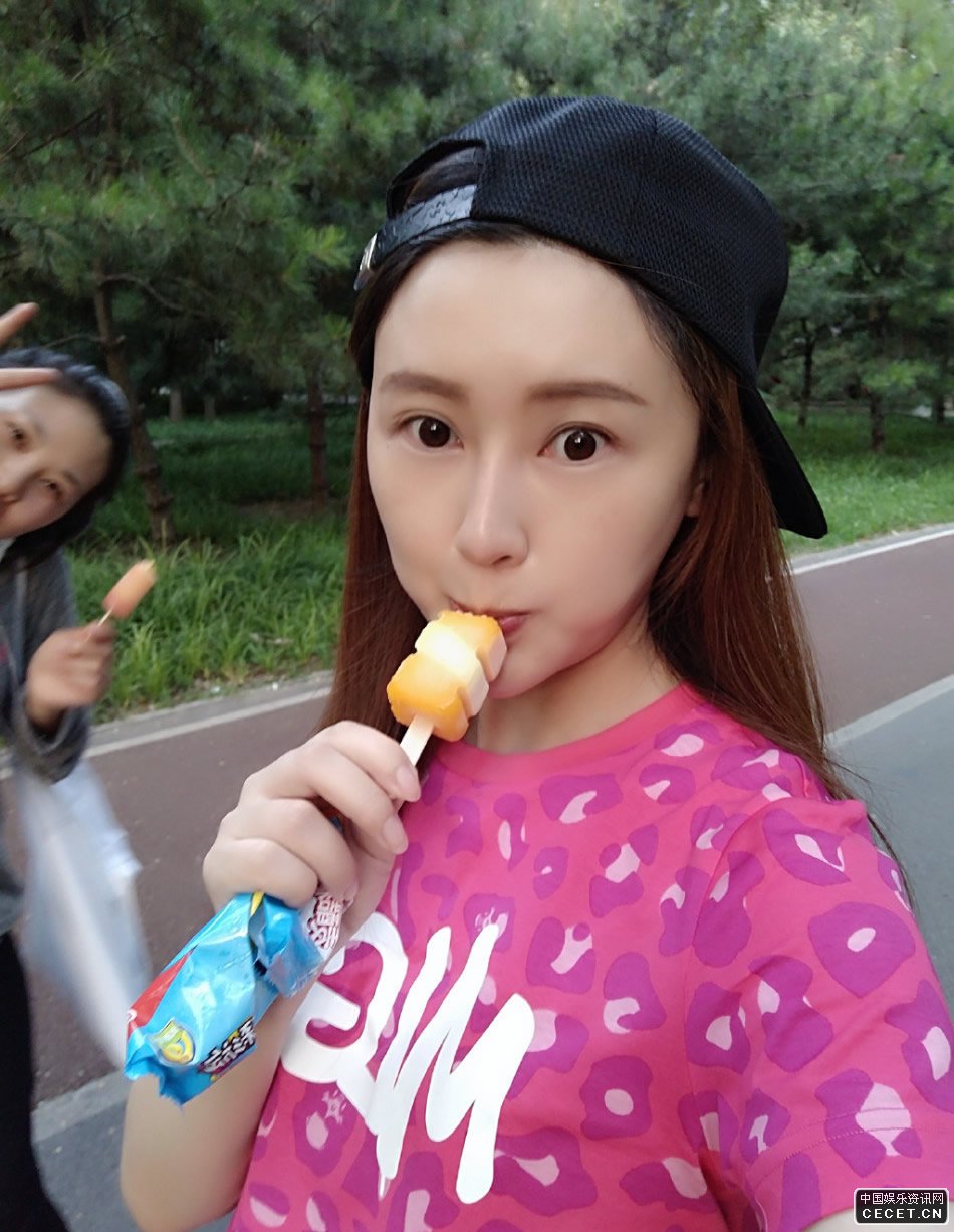 甘薇孕肚照俏皮喝可樂(lè ) 白衣現身四肢仍纖細