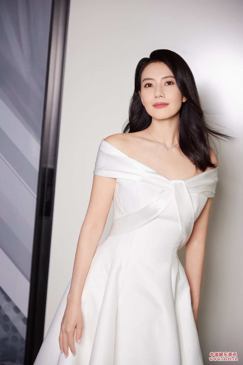 高圓圓白色露肩長(cháng)裙露出淡淡微笑 氣質(zhì)溫婉優(yōu)雅