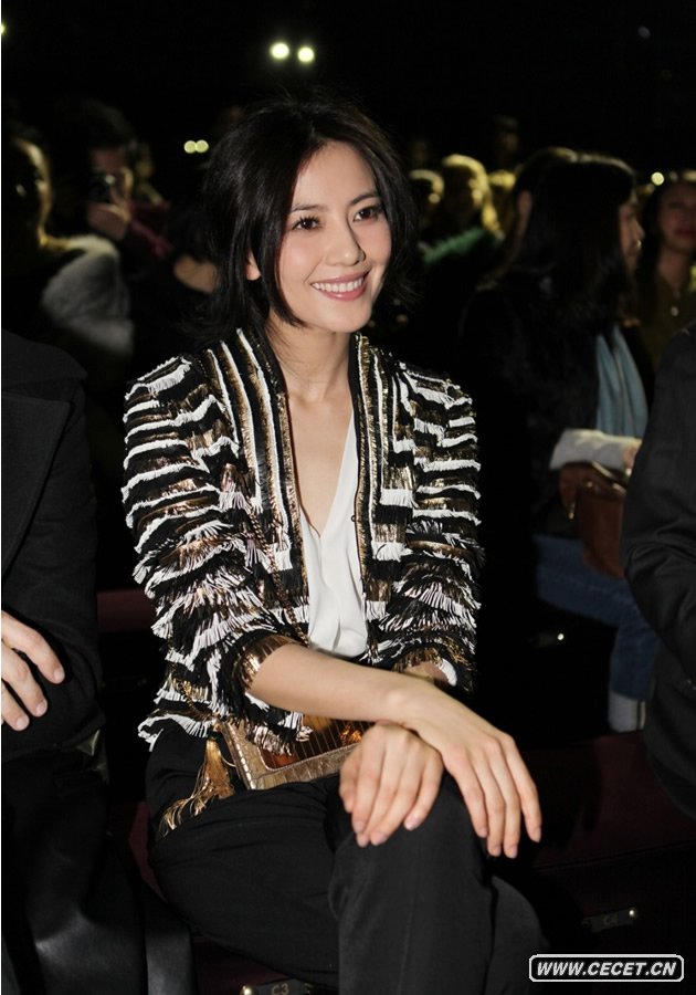高圓圓亮相米蘭時(shí)裝周 黑金戰袍刮中性風(fēng)