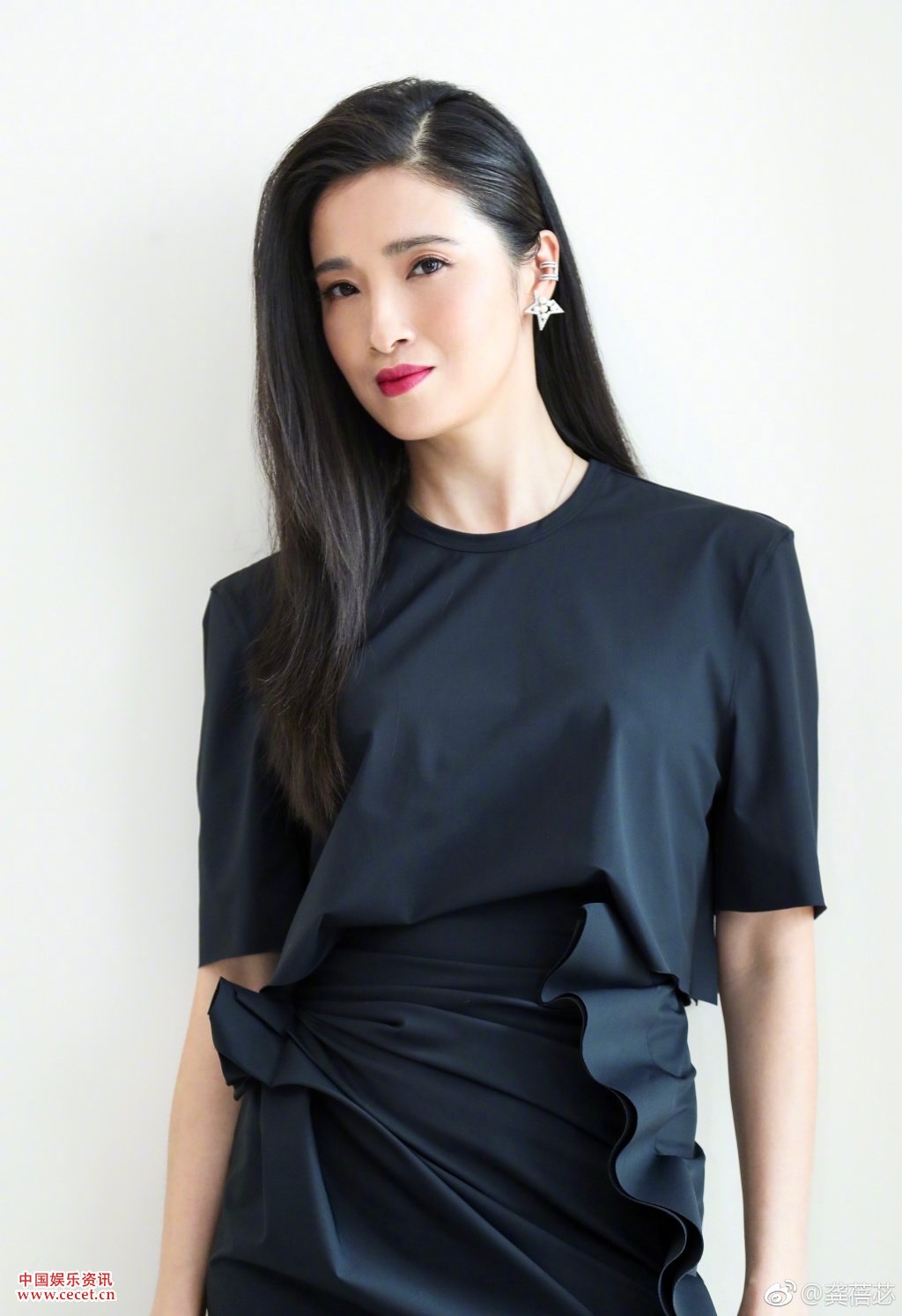 龔蓓苾黑長(cháng)裙隨性自在 長(cháng)發(fā)披肩顯纖細腰身