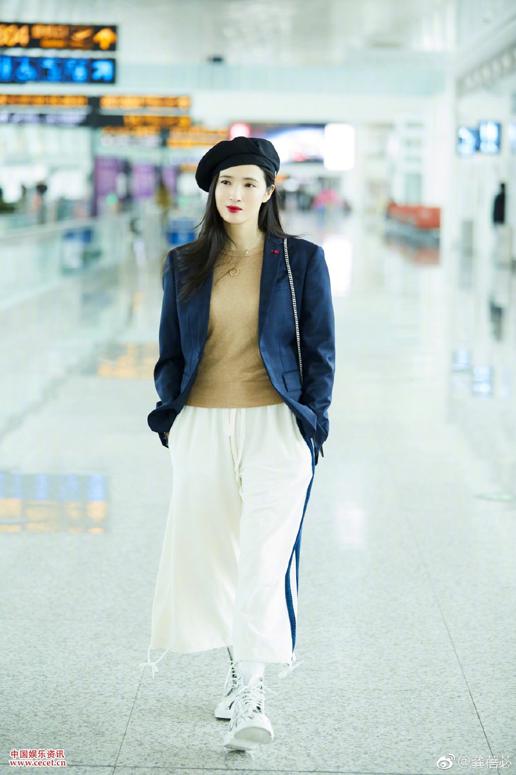 龔蓓苾機場(chǎng)照瀟灑輕盈 春日暖陽(yáng)天氣甚好