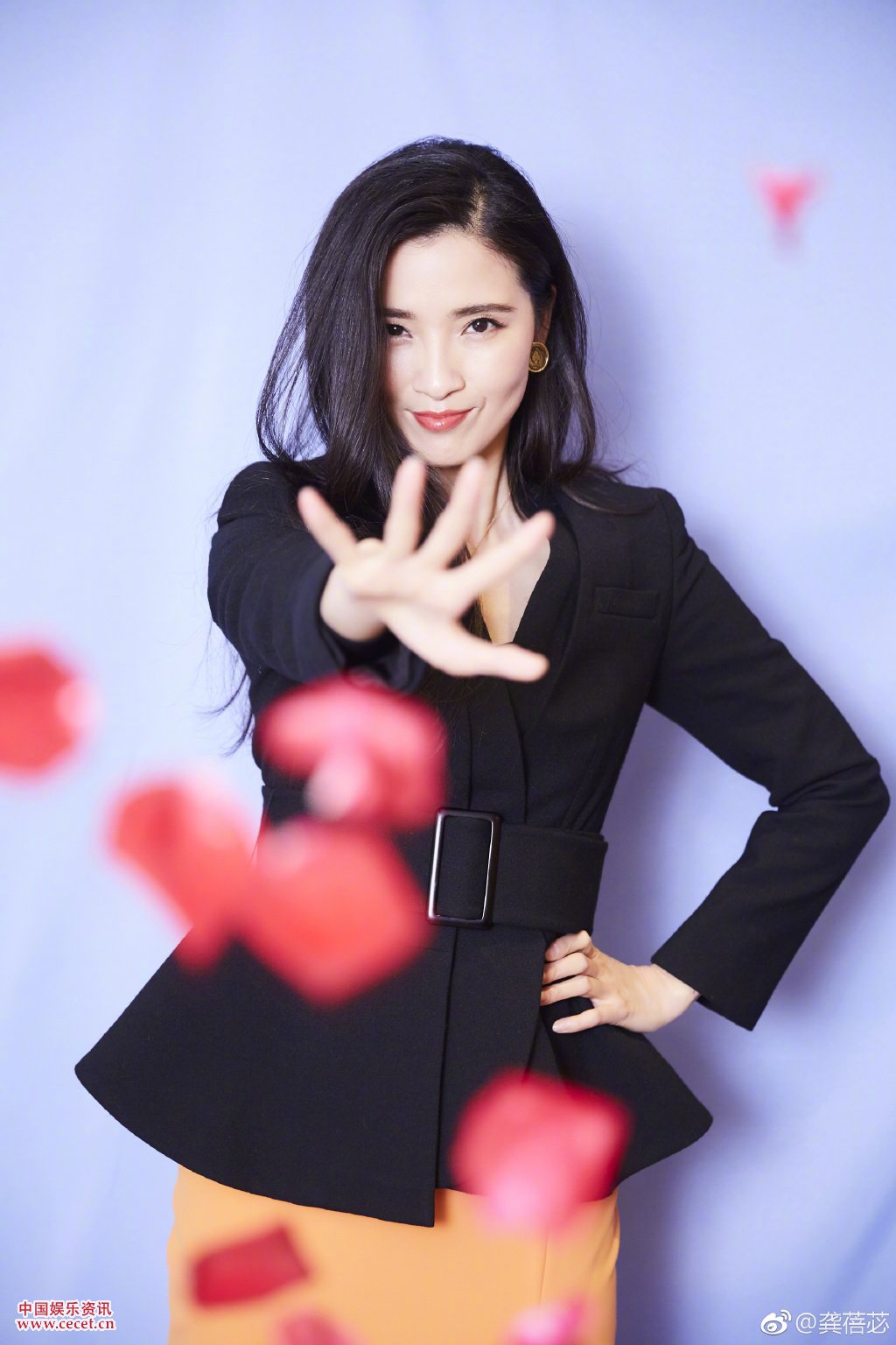 龔蓓苾夢(mèng)幻光影優(yōu)雅照 玫瑰作伴人比花嬌