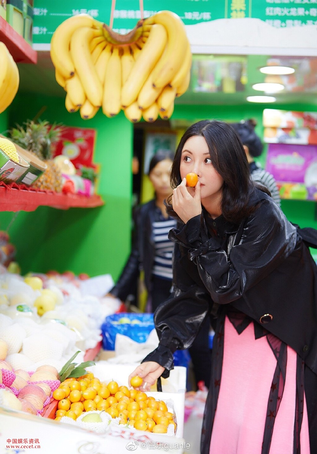 管樂(lè )水果店里個(gè)人美照 妝容精致令人賞心悅目