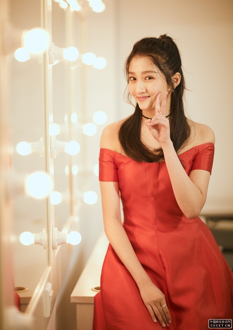 關(guān)曉彤身穿一字肩紅裙亮相 十分端莊甜美