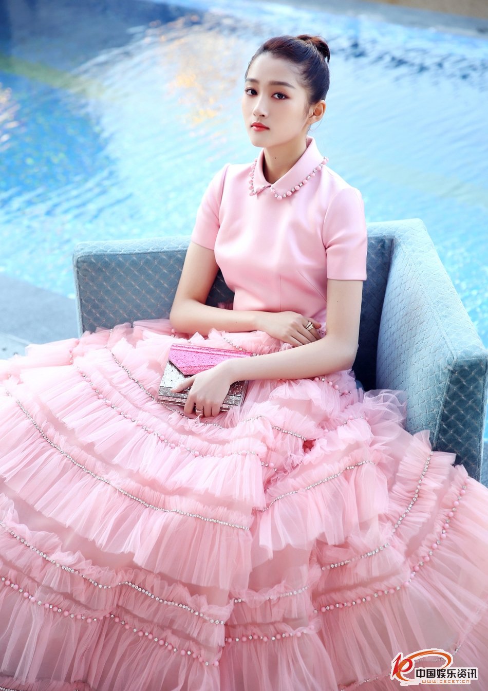 關(guān)曉彤身著(zhù)粉色長(cháng)裙亮相澳門(mén)國際電影節