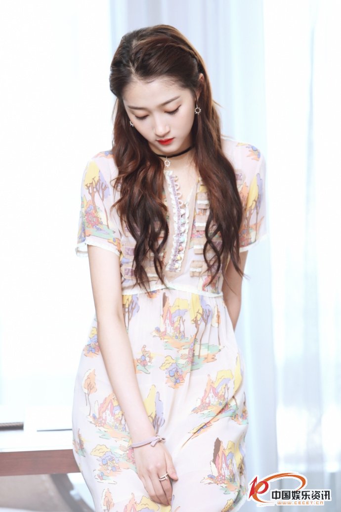 關(guān)曉彤印花小粉裙美照 妝容精致甜美大方