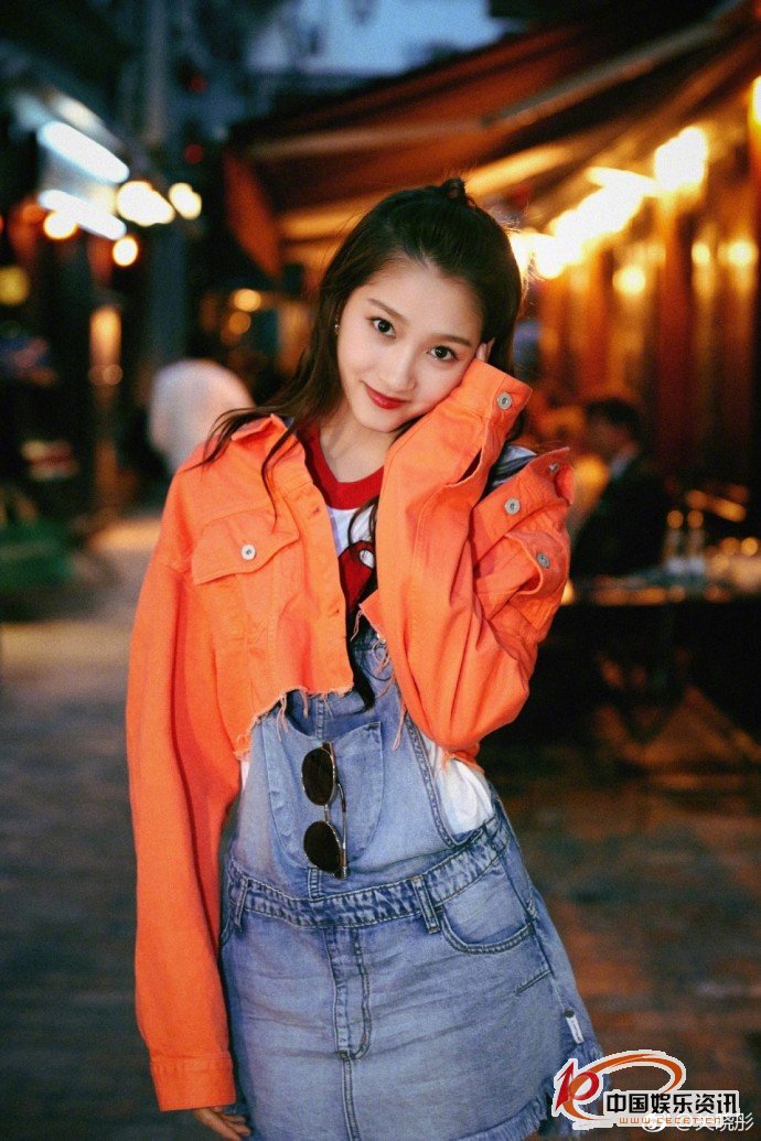 關(guān)曉彤牛仔裙暢游街頭 青春活力少女感十足