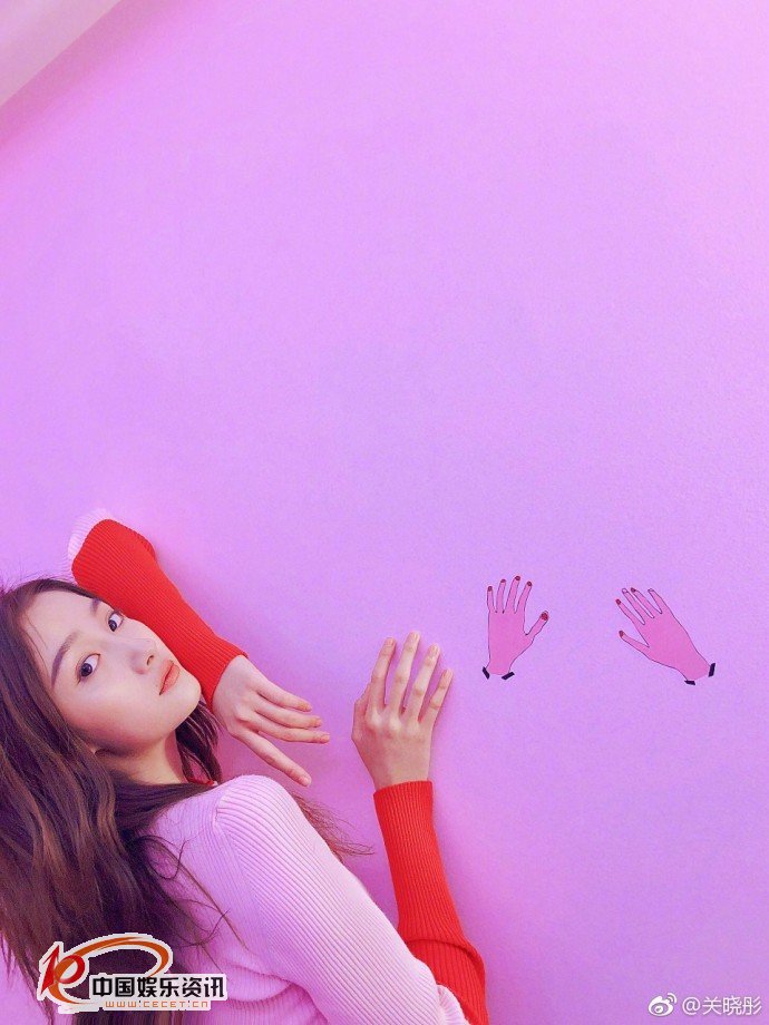 關(guān)曉彤印花上衣美照 眼神溫和皮膚白嫩美麗動(dòng)人